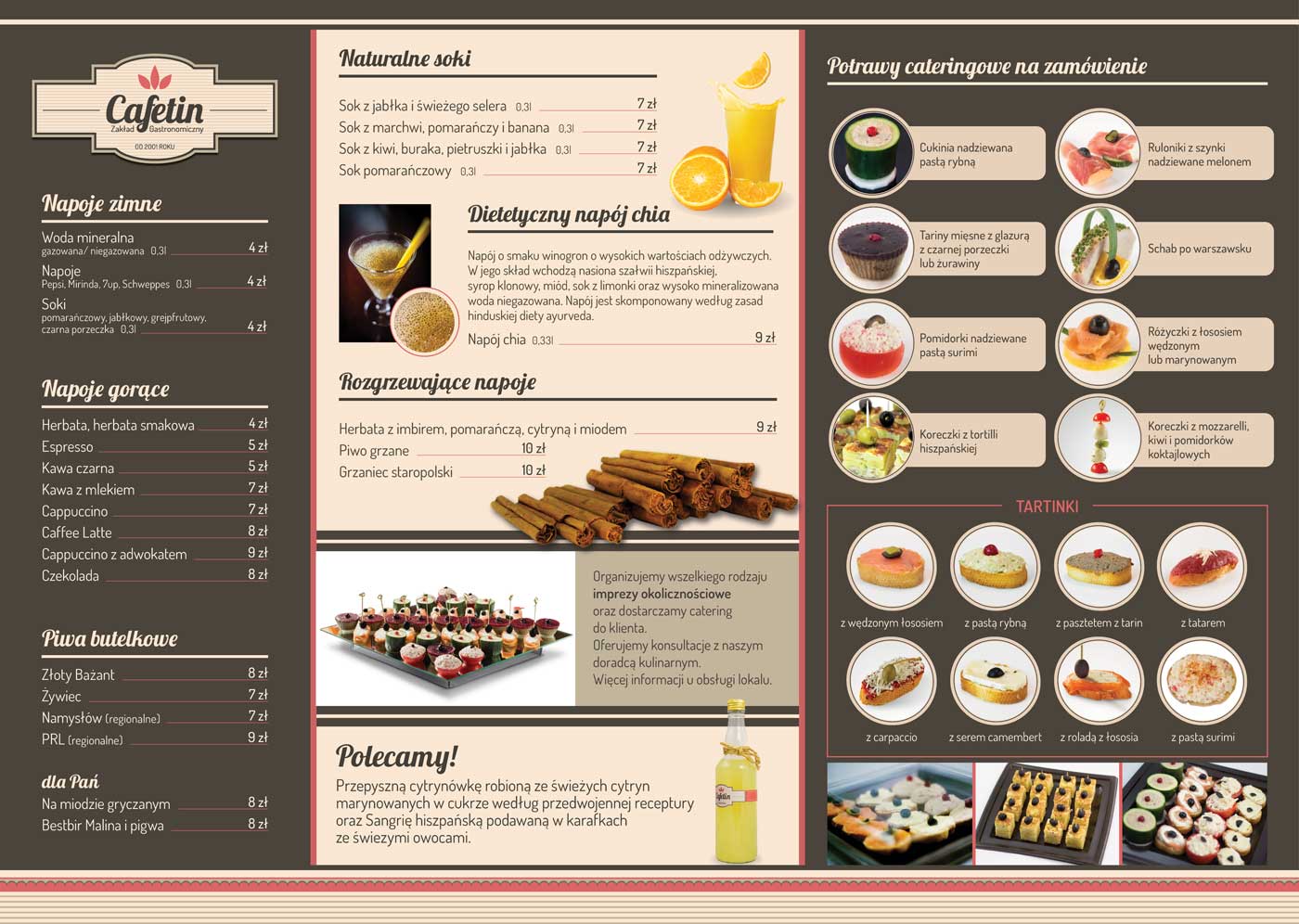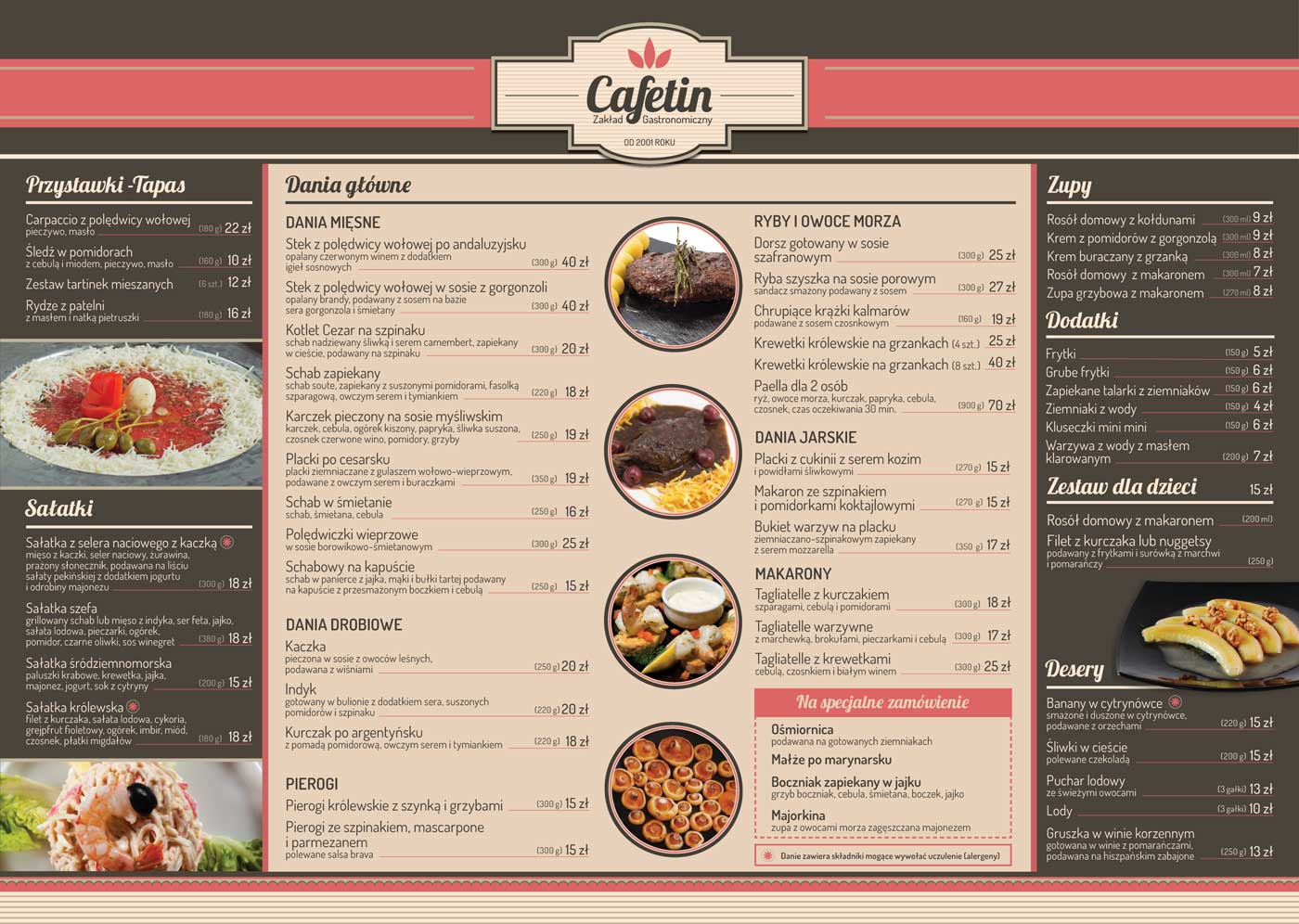 W restauracji Cafetin posiadamy szeroką gamę doskonałych dań, którymi zachwycisz wszystkich gości na przyjęciu lub uroczystości, jaką postanowisz u nas zorganizować.